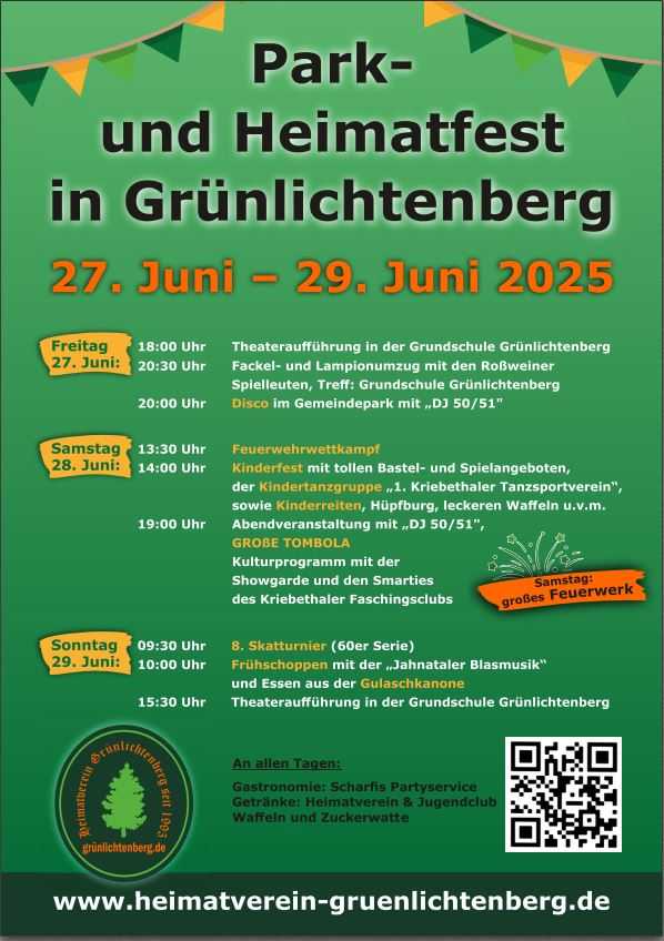 Programm Park- und Heimatfest vom 27.06. bis 29.06.2025 im Gemeindepark Grünlichtenberg